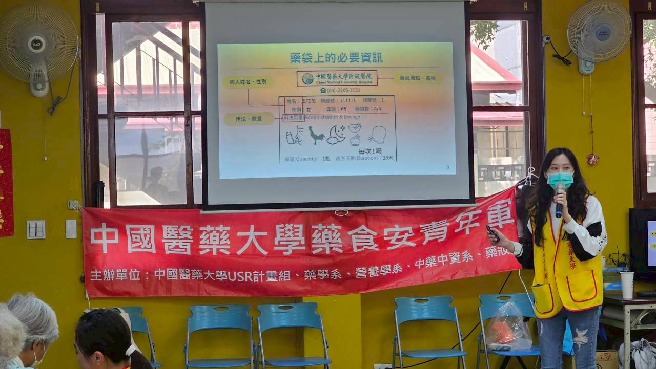 接著藥學系教師團隊以簡明扼要的方式,引導民眾認識日常用藥包裝中的各項資訊欄位,包括:藥品名稱、劑量、服用方式、保存方式、有效期限等內容,並針對常見的錯誤用藥行為如重複用藥、看錯服用次數或混淆藥品進行說明。
