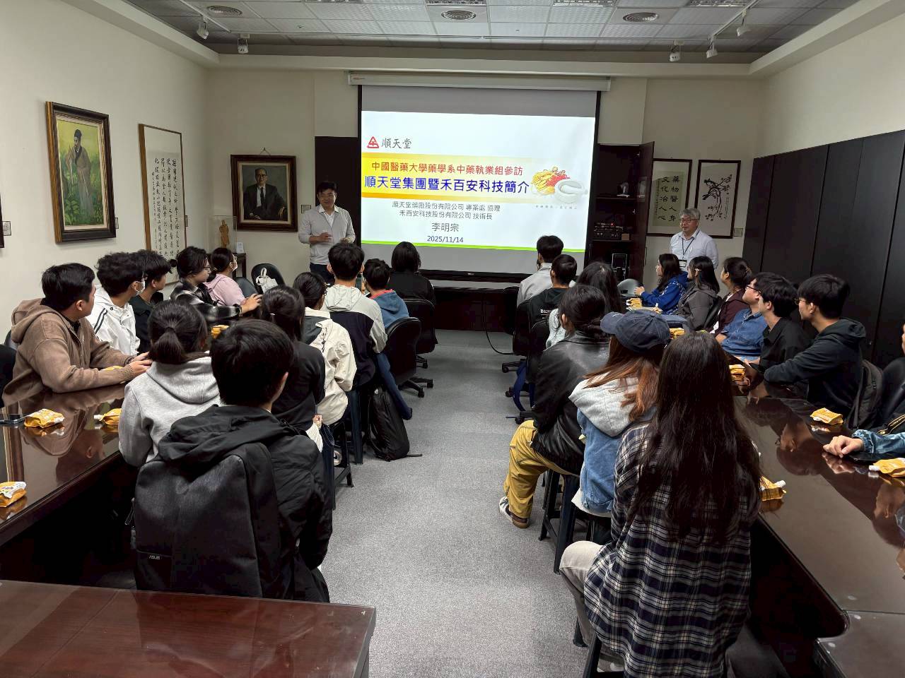上午參訪新北市新店區之順天堂藥廠股份有限公司及旗下禾百安科技股份有限公司TAF認證實驗室。順天堂為臺灣具代表性的中藥製藥企業,長期致力於結合傳統製藥技術與現代科學品質管理,現場導覽內容包括: